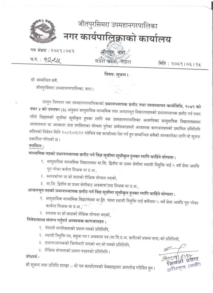 Uncategorized जितपुरसिमरा उपमहानगरपालिकाको सुचना Tags: Post navigation Previous Previous post: करैयामाई गाउँपालिकाको सुचनाNext Next post: कृषि ज्ञान केन्द्र बाराको सुचना suraj Bikram Related Posts पसाहा खोलाको पुल बाडीले बगायो। कोहल्विका रुपेश माझि द्दितिय र रोहन माझि त्तृतिय भए। नव निर्वाचित सांसद गणेश धिमाललाई नगर उद्योग वाणिज्य संघ कोल्हवीद्वारा सम्मान तथा स्वागत Leave a Reply Cancel replyYour email address will not be published. Required fields are marked *Comment * Name * Email * Website Save my name, email, and website in this browser for the next time I comment.