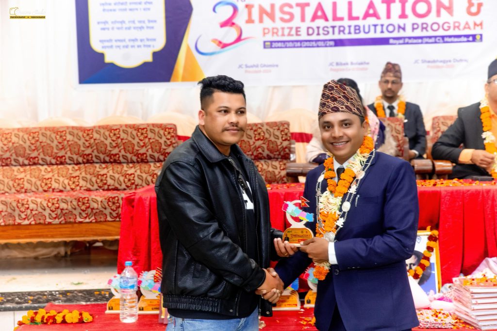 बकैया गाउँपालिकाका अध्यक्ष धर्म लामिछानेको प्रमुख आतिथ्यतामा भएको पदस्थापन कार्यक्रममा नेपाल जेसीजका निरुपित उपाध्यक्ष सुजन थापा काजी, हेटौंडा जेसीजका अध्यक्ष पंकज दास बनियाँ, संस्थापक अध्यक्ष रमेश फुयाँललगायतले शुभकामना मन्तव्य व्यक्त गरेका थिए ।