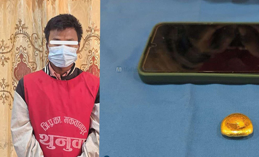 बारा जिज्ला कोल्हबी नगरपालिका वडा नम्बर ५ घर भएका एक जना ४३ ग्राम सुनसहित रातोमाटे मकवानपुरबाट पक्राउ परेका छन् ।