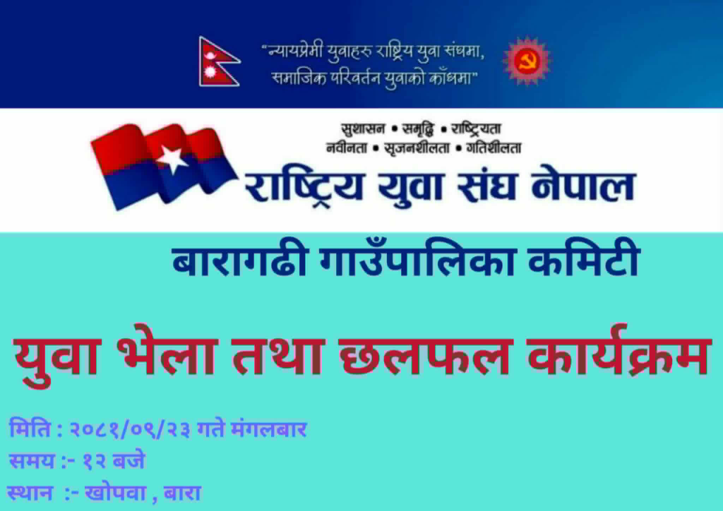 राष्ट्रिय युवा संघ नेपाल जिल्ला कमिटी बारा ले संगठन का गतिविधि , युवा भेला तथा छलफल कार्यक्रम लाई तिब्रता दिएको छ ।