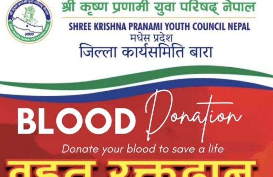 “दुर्ब्यसन त्यागौ, सेवा मुखी बनौ,” भन्ने मुल नाराका साथ श्री कृष्ण प्रणामी युवा परिषद नेपाल मधेश प्रदेश र जिल्ला कार्य समिती बाराको आयोजना तथा नेपाल रेडक्रस सोसाइटी बिरगंज पर्साको प्राविधिक सहयोगमा बाराको जितपुरसिमरा उपमहानगरपालिका वार्ड न -१२ फत्तेपुर श्री नेपाल राष्ट्रिय माध्यमिक बिद्यालयको प्राङ्गणमा बृहद रक्तदान कार्यक्रम यहि मिति २०८१/०६/१९ गते शनिबार