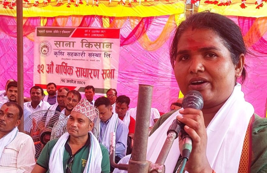 बाराको जीतपुरसिमरा उपमहानगरपालिका वडा नं. १८ मा रहेको साना किसान कृषि सहकारी संस्था लिमिटेड मनहर्वाको २२ औं बार्षिक साधारणसभा सम्पन्न भएको छ । बुधबार कलैया उपमहानगरपालिका वडा नं.२ स्थीत अमर मावि दोहरीमा सम्पन्न सभाले नयनकला खड्को अध्यक्षतामा १३ सदस्य संचालक समिति निर्वाचित गरेको छ । यस्तै उपाध्यक्षमा श्यामता कुमारी र सदस्यहरुमा विनिता गौतम् ,शुभद्रा देवी […]